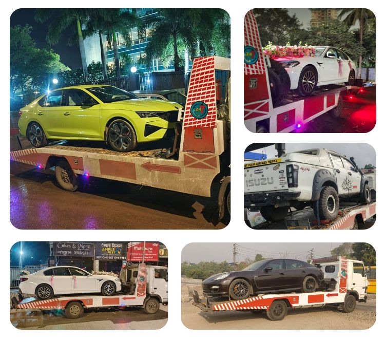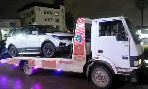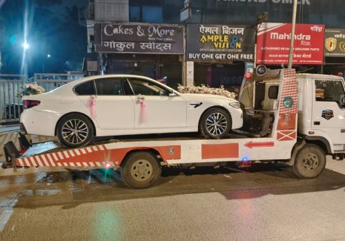 Reliable flatbed car towing in Bhiwandi & Thane. We ensure safe, damage-free recovery for all sedans and SUVs on the Agra-Mumbai Highway 24/7.